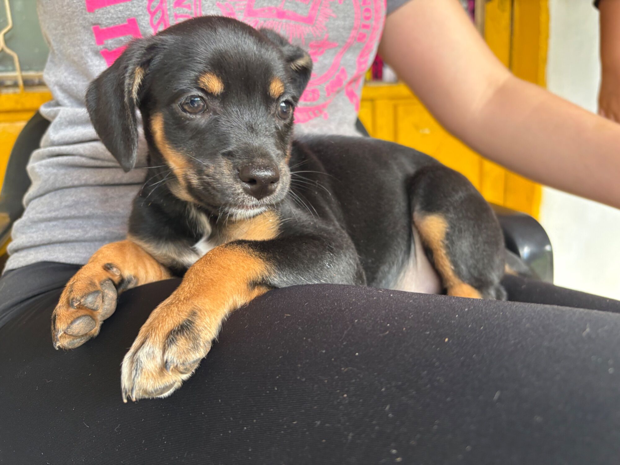 preta com patas marrom! Já tomaram a 1ª dose da vacina e do vermífugo.